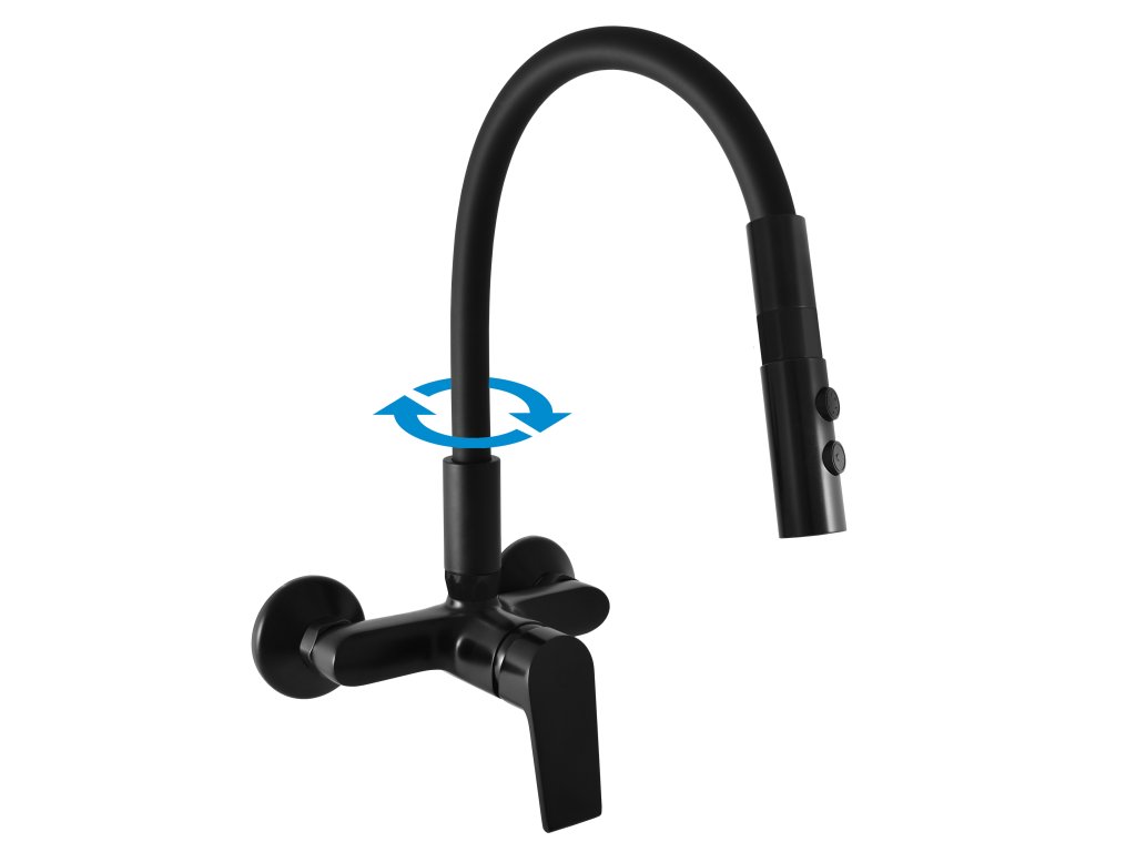 Vodovodní baterie dřezová stojánková s flexibilním otočným ramínkem se sprchou.