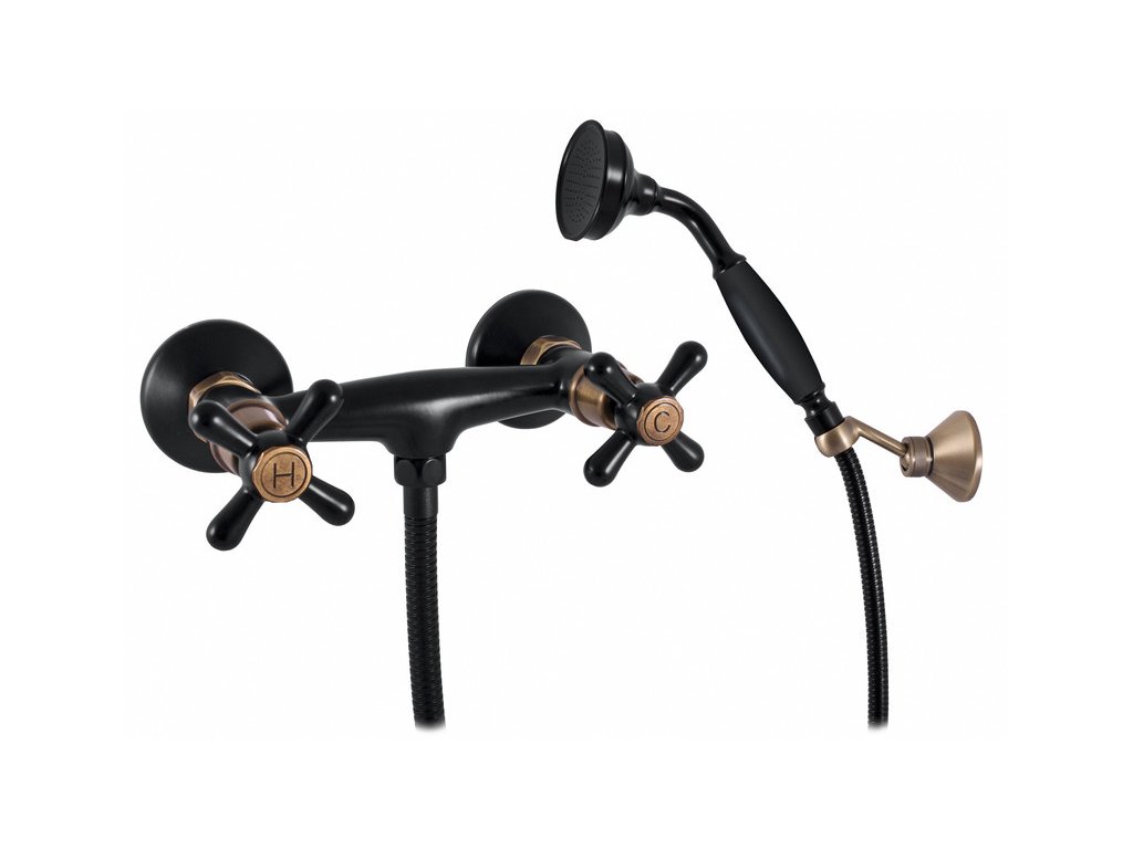 MORAVA RETRO - Sprchový set s baterií, Černá matná/Stará mosaz (Bronz) MK180.5/2CMATSM, RAV Slezák