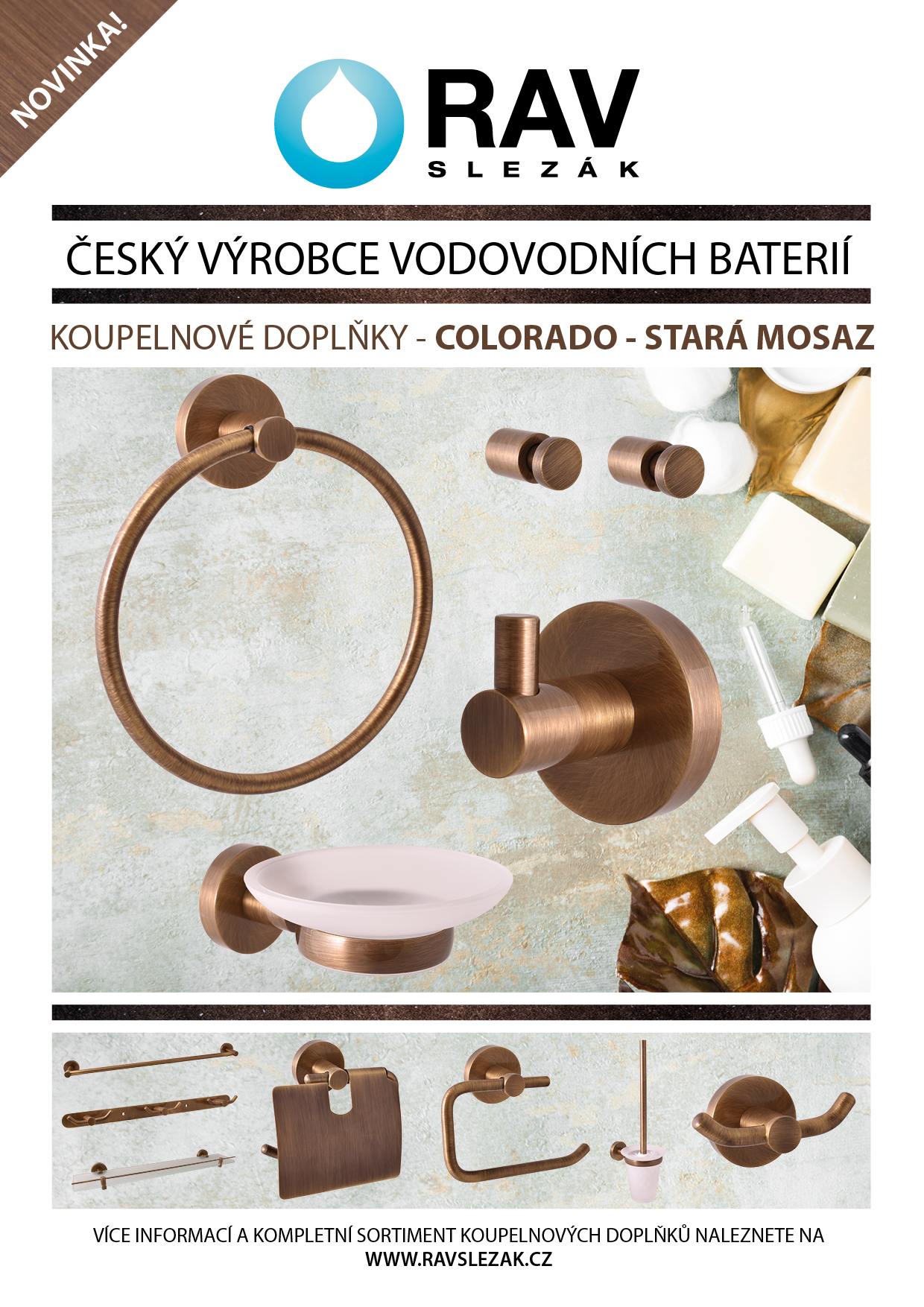 Rozšiřujeme sortiment koupelnových doplňků oblíbené řady COLORADO, tentokrát v provedení "STARÁ MOSAZ (BRONZ). Doplní tak skvěle Vaše mosazné baterie a veškeré mosazné příslušenství.
