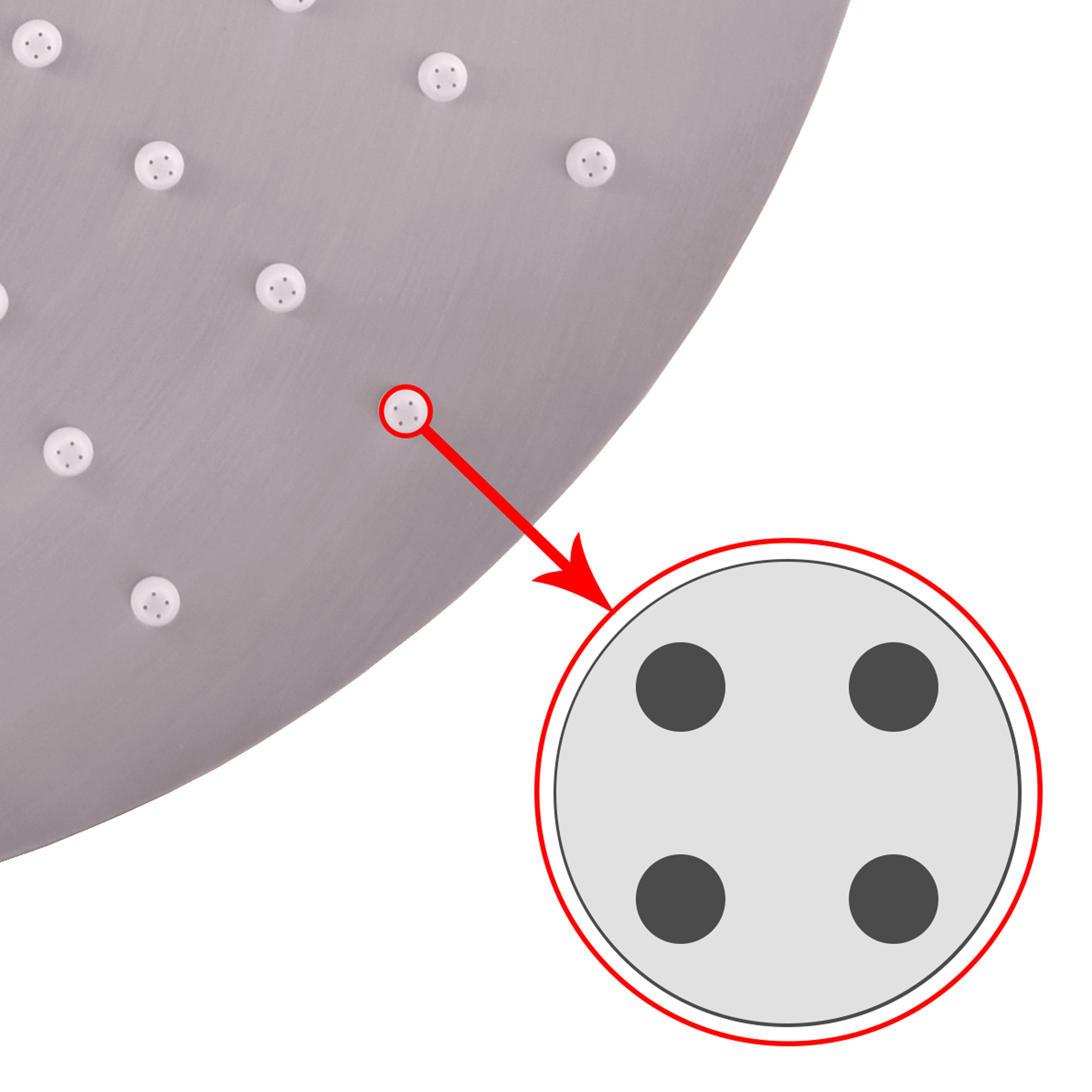 Elegantní design naší nové nerezové sprchy podtrhne styl vaší koupelny. Precizně umístěné trysky zajišťují nejen moderní vzhled, ale i maximální komfort. Sprcha má také funkci EasyClean – jednoduché čištění drobných trysek (vznikající vodní kámen lze pouhým jemným dotykem z povrchu trysek setřít). Nerezovou stropní sprchu KS0001/4 nabízíme v průměru 300 mm a v sedmi barevných variantách, díky technologii povrchové úpravy PVD (Physical Vapor Deposition).