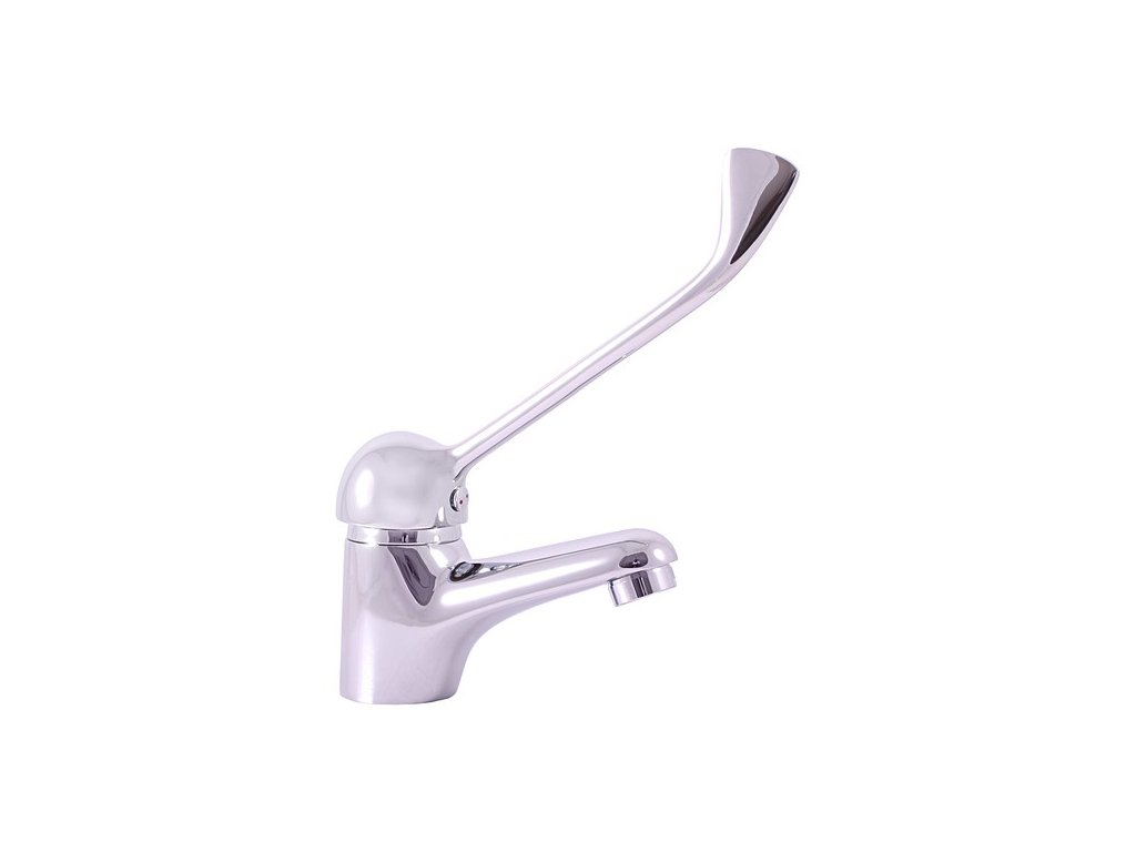 Vodovodní baterie umyvadlová stojánková bez otvírání odpadu s lékařskou pákou.