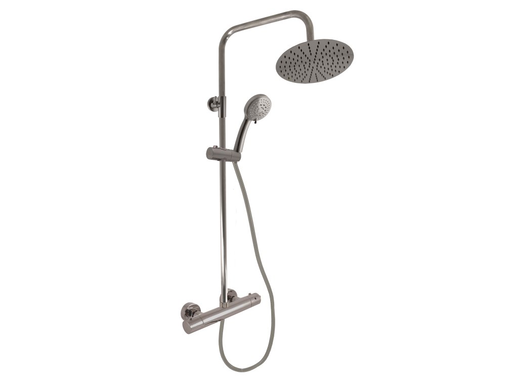 TERMOSTATICKÁ - Sprchový systém s termostatickou baterií a teleskopickou tyčí, Metal Grey - kartáčovaná TRM82.5/5-01.4MGK, RAV Slezák