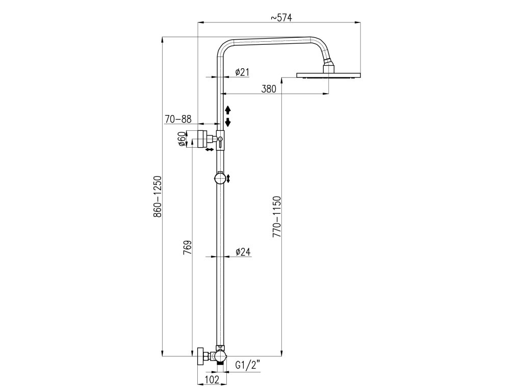 Vodovodní baterie sprchová TERMOSTATICKÁ s hlavovou a ruční sprchou a teleskopickou tyčí se skládá z: