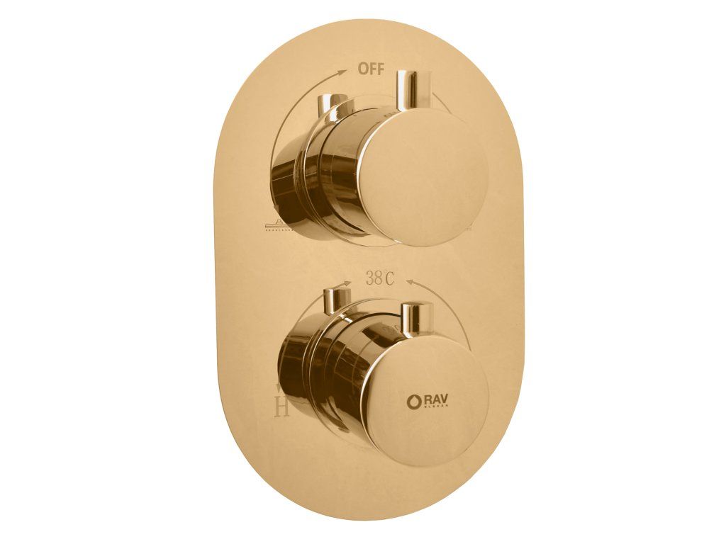 TERMOSTATICKÁ - Vanová/Sprchová baterie podomítková 2-cestná s tělesem, Zlatá kartáčovaná TRM86ZK, RAV Slezák
