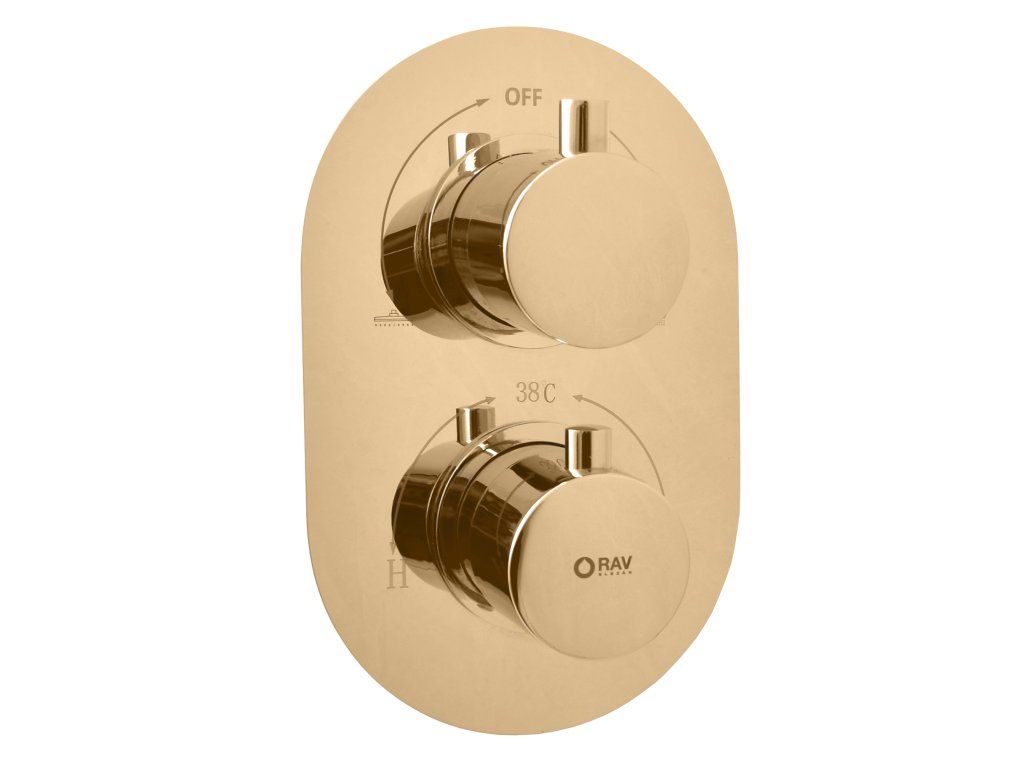 TERMOSTATICKÁ - Vanová/Sprchová baterie podomítková 2-cestná s tělesem, Zlatá lesklá TRM86Z, RAV Slezák