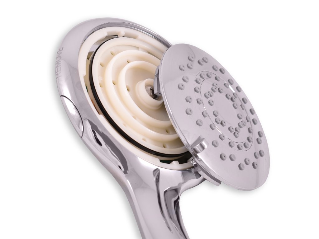 - plastová spořící antivápenná 5-polohová sprcha jednopolohová PS0024: Sprchová růžice má regulaci spotřeby vody a to na:
